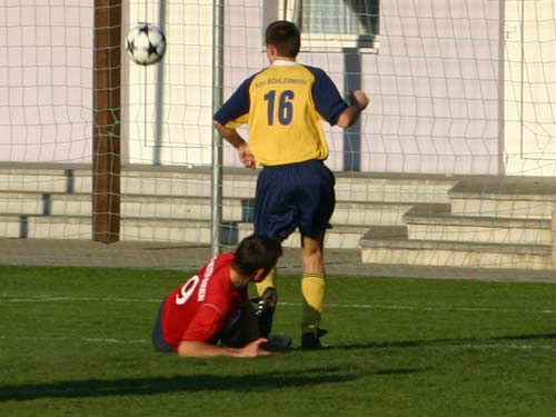 40. Minute: Flanke von Potzmader Robert auf Loibl Reinhard. Dessen Kopfball kann ein Verteidiger noch auf der Linie klären.