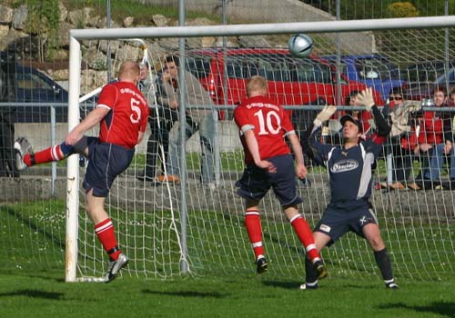 16. Minute: Schuß von Rene Zisch aus 20m mit seinen schwächeren linken Fuß. Der Ball wird noch abgefälscht und geht ganz knapp neben das Tor.