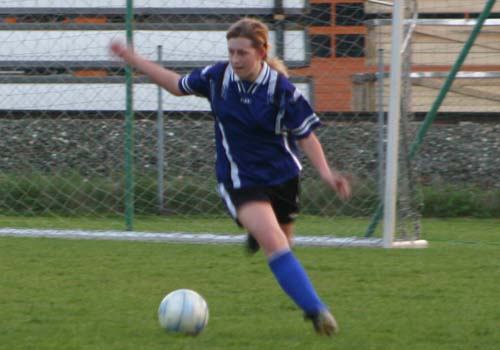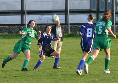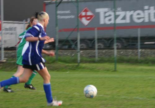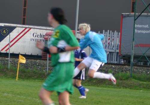 Bei einem Eckball von Conny Hudler verfehlt Tina Strohmaier mit einem Kopfball das kurze Eck nur knapp.