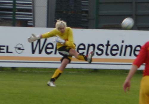 Nach einem Mißverständnis (Loibl spielt den Ball wieder zur Mitte), musste Torfrau Skorsch auf einem Pressball gehen. Der wegspringende Ball geht knapp am heimischen Tor vorbei (30.)