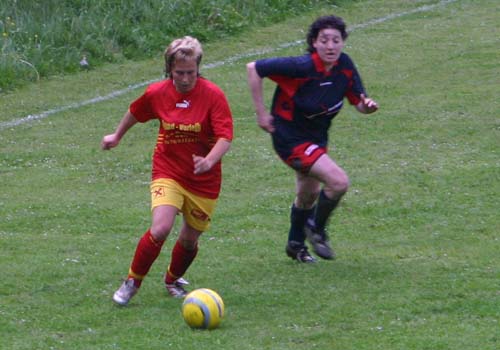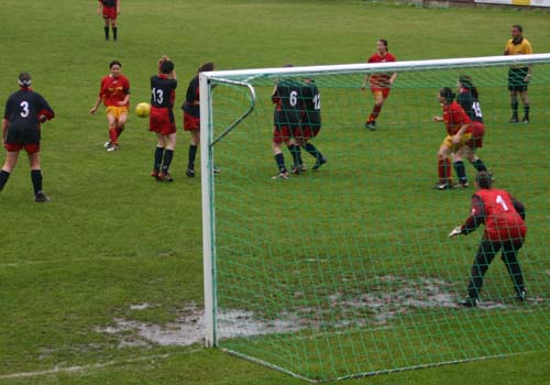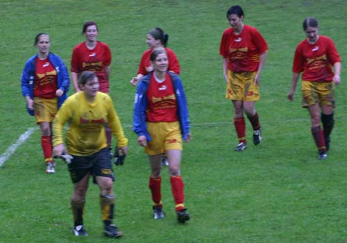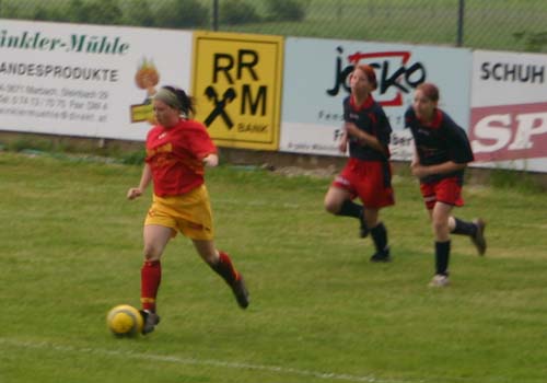 Auch die Heimischen kamen zu einigen Chancen. Ein Schuß von Andrea Kummer geht nach einem Mißverständnis in der Abwehr über das Tor. Dann noch ein weiterer Schuß vom 16er Eck der am Tor vorbei geht.