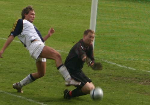 16. Minute: Nach einem Fehler des heimischen Keepers kommt Martin Haselreither alleine zum Ball. Doch er schießt knapp am Tor vorbei.