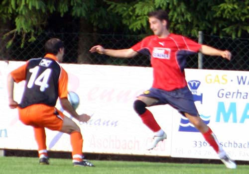 56. Minute: Nach einer schönen weiten Flanke in den 16er erzielt Thomas Krejik mit einem genauen Schuß in das lange Eck das 1:0 für Aschbach.