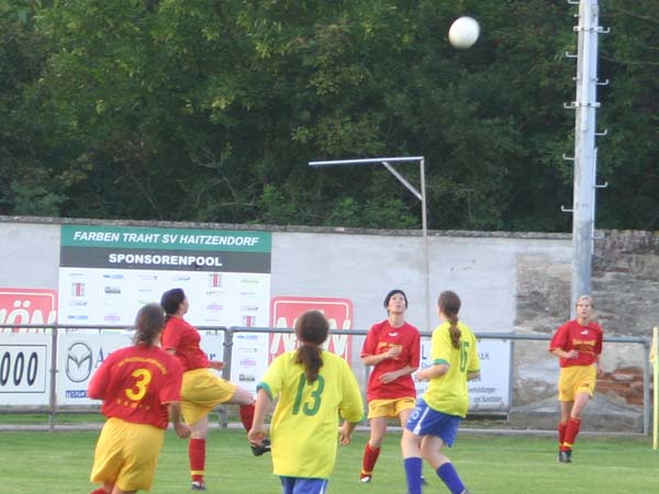 Gegen einen vor allem in der 1. Halbzeit ebenbürtigen Gegner taten sich die SCG Damen vor allem beim verwerten ihrer Chancen schwer. Diesmal stand die Abwehr gut und ließ nicht viele Chancen für die Heimischen zu. Erst als die Haitzendorfer müde wurden und die Konzentration nach ließ verwerteten auch die SCG Damen ihre Chancen. Nach dem 1. Treffer war der Bann gebrochen.