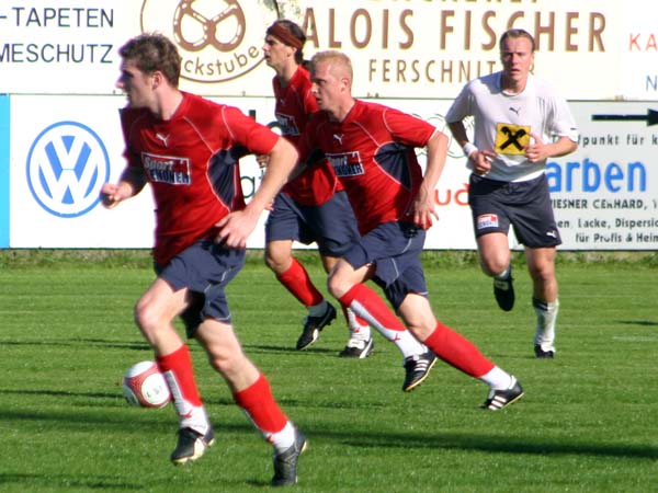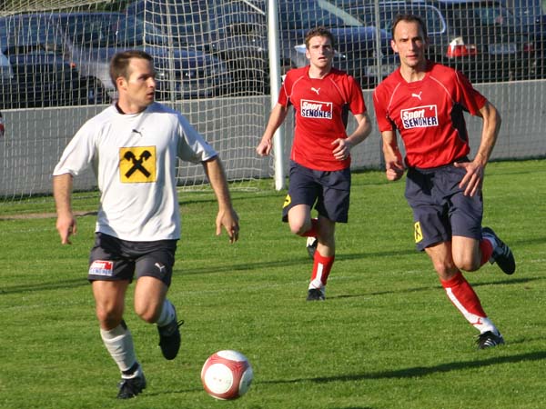 35. Minute: Wieder ein Pass in Grestens 16er. Almos Vitok überspielt die SCG Abwehr und schießt trocken zur 3:1 Führung in das lange Eck ein. Jetzt stellt Trainer Pitzl wieder auf die Standart Abwehr mit Libero Hermann Loibl um.