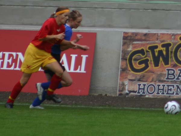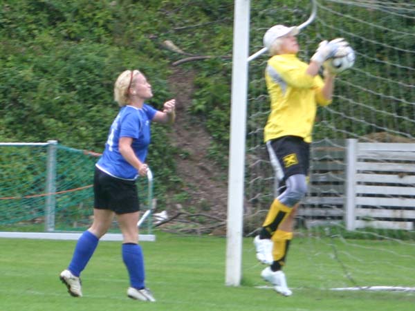 Der Anschlußtreffer zum 2:4 für die Hohenberger gelingt in der 52. Minute. Einen guten Schuß kann Andrea Skorsch zwar noch parieren doch gegen den Nachschuß von Jasmin Wagner hat sie keine Chance mehr.