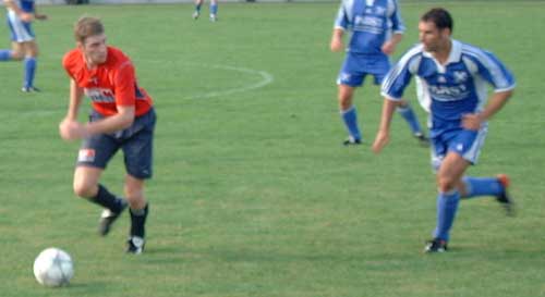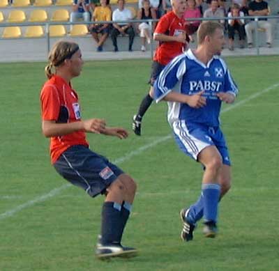 24. Min. Flanke von Martin Lacenca (manche munkeln ja, der neue Legionär sei ein - etwas größer geratener - Zwillingsbruder von Ex-Wirbelwind Michael Ritt). Der Flugkopfball von Mario Ondrus geht am Tor vorbei.