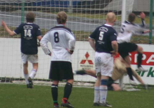 56. Minute: Wieder ein Freistoß durch Tobias Heigl. Jörg Roth im Tor der Gäste lässt den Ball abtropfen und Martin Lacena stochert den Ball über die Linie. Ein Pfiff ertönt und der Schiedsrichter gibt zur Verwunderung aller abseits.