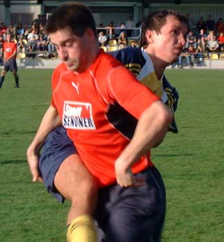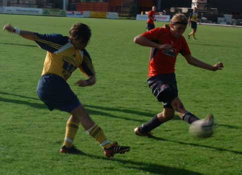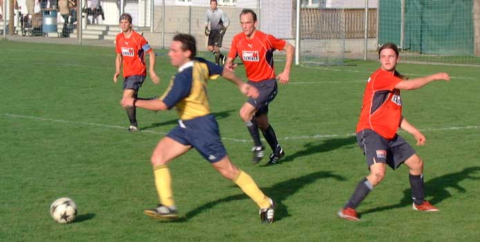4. Minute: Andreas Potzmader, auch "Filz" genannt, zeigt, was er kann und verschafft Gresten die erste Chance. Seinen Schuss aus 16 Metern kann der Keeper zur Ecke klären.