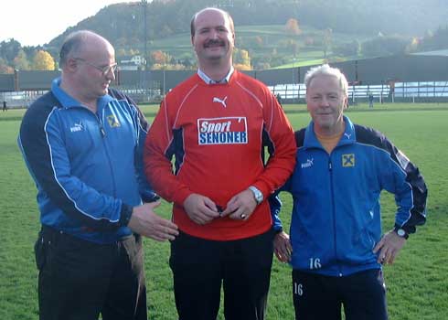 Leo Hubegger wurde in der Pause des Meisterschaftsspiels für seine Verdienste um den Nachwuchsfußball geehrt. Der Unternehmer sponsert genauso wie sein Bruder Michael immer wieder großzügig für Grestens Jugendteams. Präsident Großberger und Jugendleiter Latschbacher überreichten ihm als kleines Dankeschön ein Trikot des SC Welser Profile Raika Gresten-Reinsberg (siehe Fotos).