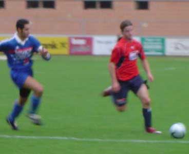 5. Minute: Das Spiel beginnt einem Schock. Robert Luger, quirliger Neo-Verteidiger, verletzt sich bei einer Attacke und muss aus dem Spiel (Martin Haselreither springt von der Ersatzbank und in die Bresche)