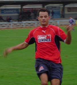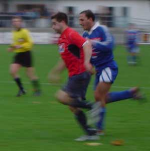 74. Minute: Der Ausgleich für Gresten: Reinhard Loibl, in der Pause eingewechselt und schon in der Reserve erfolgreich (2 Tore), kommt nach einem Corner zum Kopfball, der Goalie vollführt Bocksprünge und so steht's 1:1
