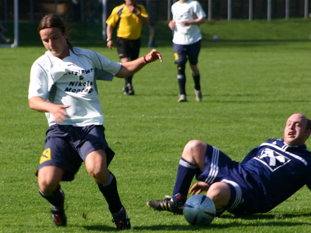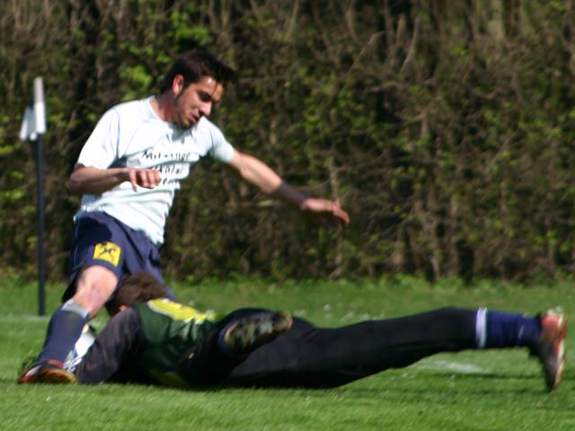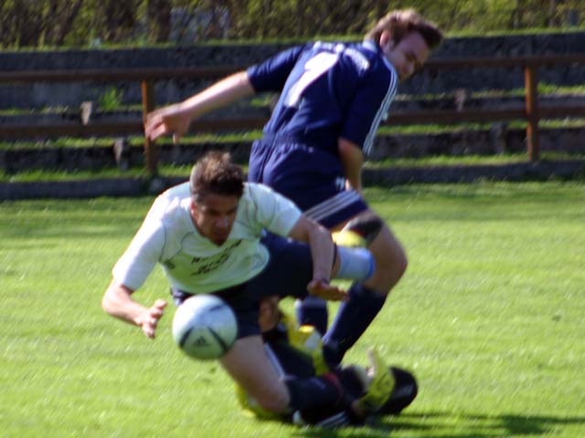 33. Minute: Nach einem Freistoß ist unsere Abwehr unachtsam, der Kematner Stürmer köpfelt ungestört ins lange Eck zum 1:1-Ausgleich. Der Anfang vom Ende.