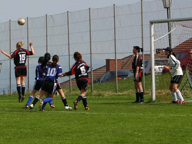 18. Minute: Panstingl K. läuft aus abseitsverdächtiger Position auf das Tor. Ihr Abschluß wird von der Verteidigerin gerade noch zum Corner geblockt.