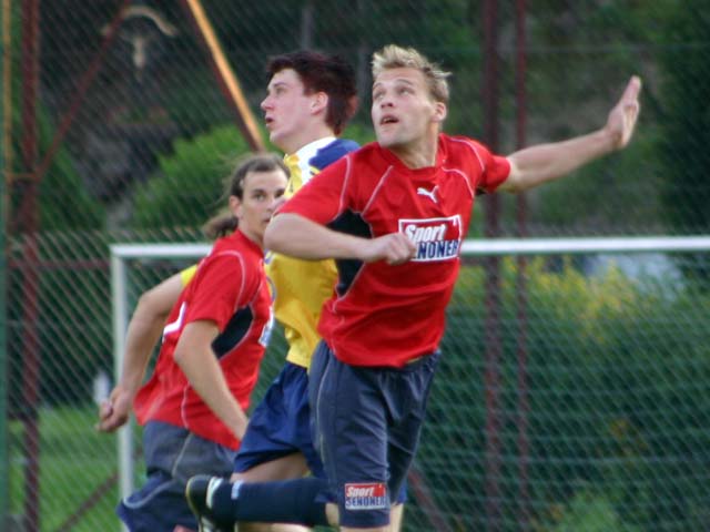33. Minute: Christian Fressner, manche nennen ihn Manitu, knallt mit seinem schwächeren linken Fuss drauf - der Schuss wird leider abgeblockt. Hugh!