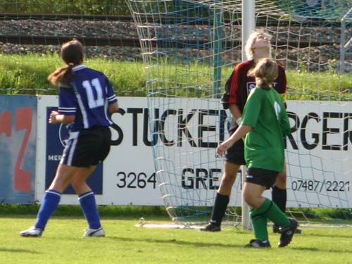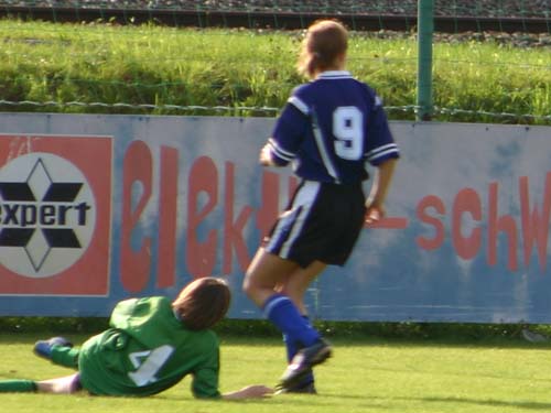 6. Minute: Hubegger C. läuft aus schrägen Winkel auf das Tor und schießt mit ihren schwächeren linken Fuß knapp am Tor vorbei.